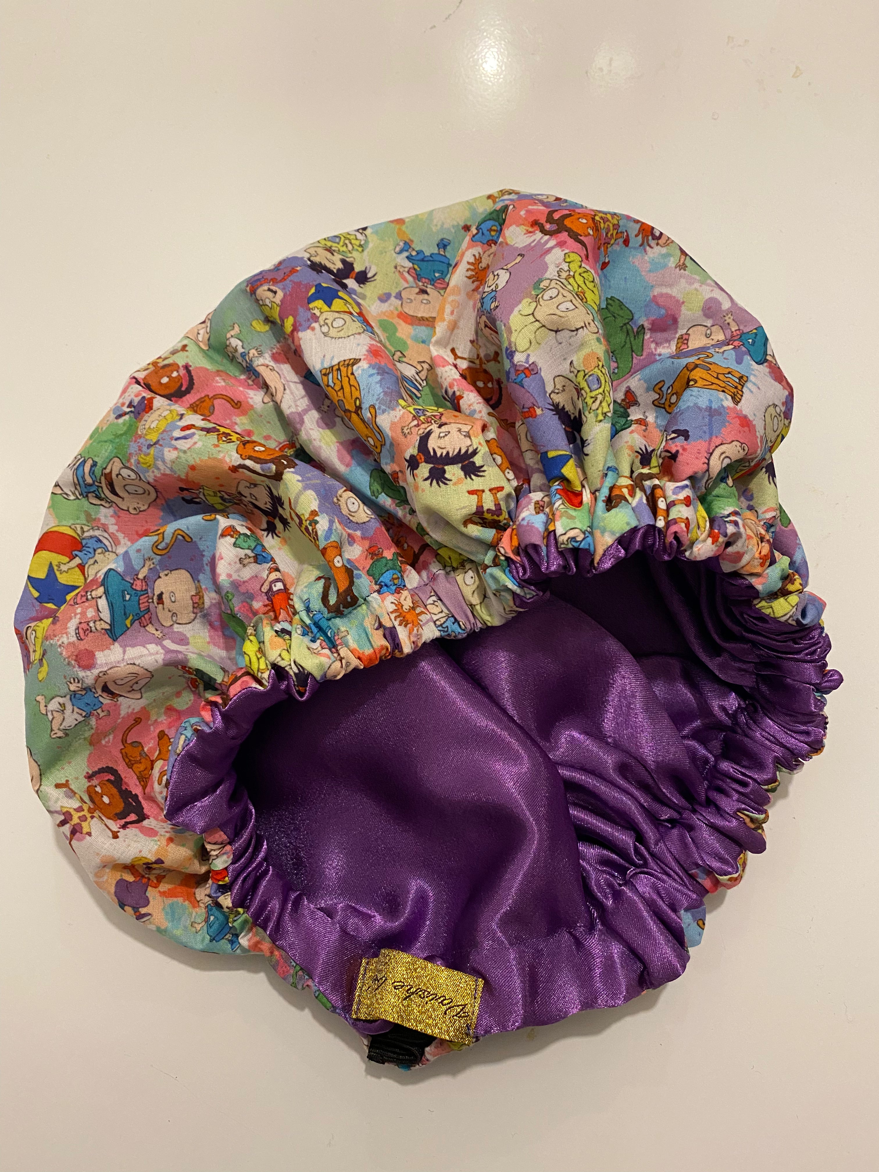 Satin fabric of the old Skool rugrats lined with purple satin
