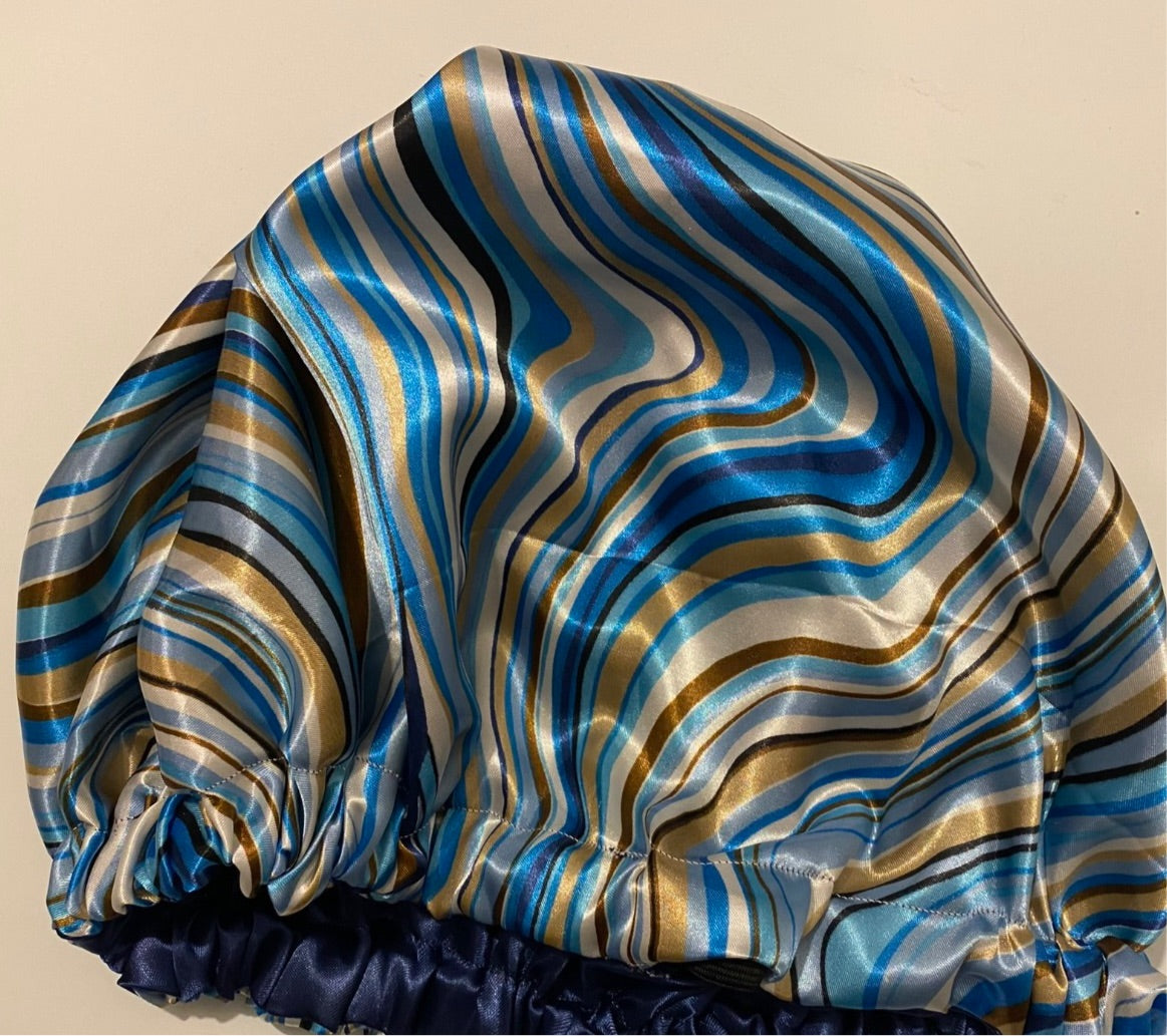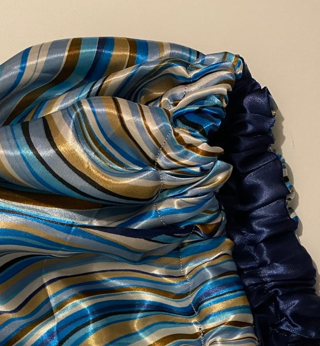 The beautiful mixed of blues and brown makes this reversible bonnets memorable! She is also adjustable!